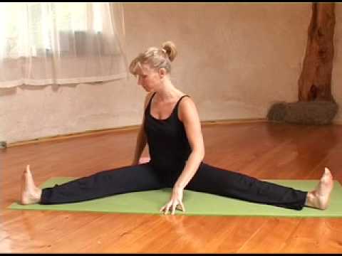 Having positioned the foot and knee correctly, stretch the left leg out, keeping the leg firmly on the mat. Settle the heel firmly and stretch the toes up. (The heel should pull gently away from the ankle.) Now inhale and bend forward over the straight leg, catching the foot with both hands if possible. Beginners should bend only as far as they can without rounding the back. When this posture is done correctly and completely, the body will roll forward over the extended leg, absolutely flat from the tail bone to the head. Stay there breathing normally for as long as you can. Inhale, release the handhold, come up smoothly, straighten the bent leg and relax. Repeat on other side.